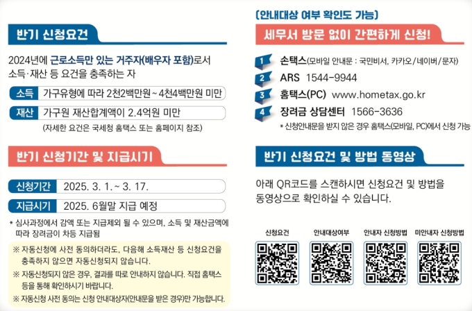 반기 신청은 근로소득만 있는 신청자를 대상으로 하며, 상반기와 하반기로 나누어 진행됩니다.